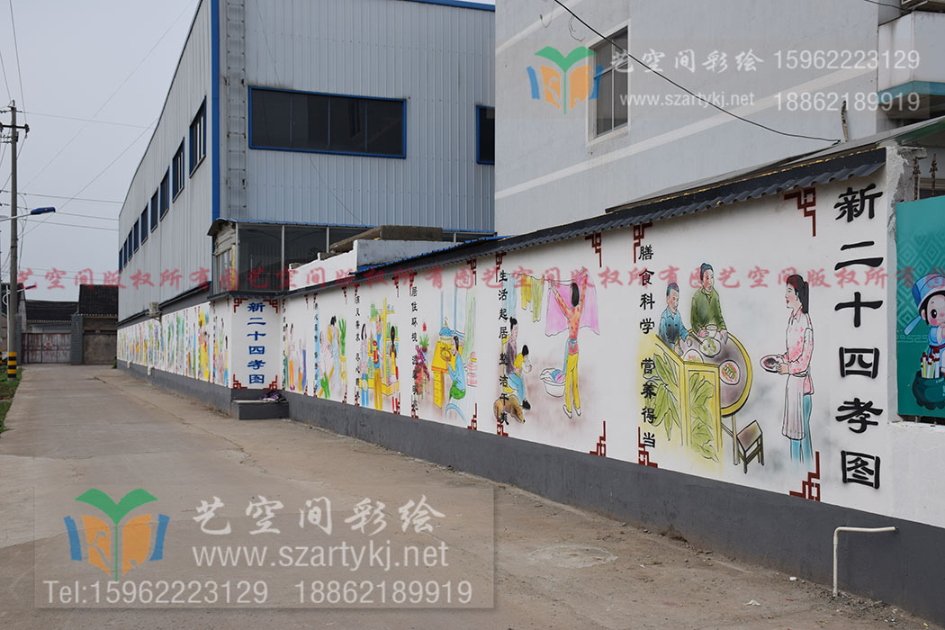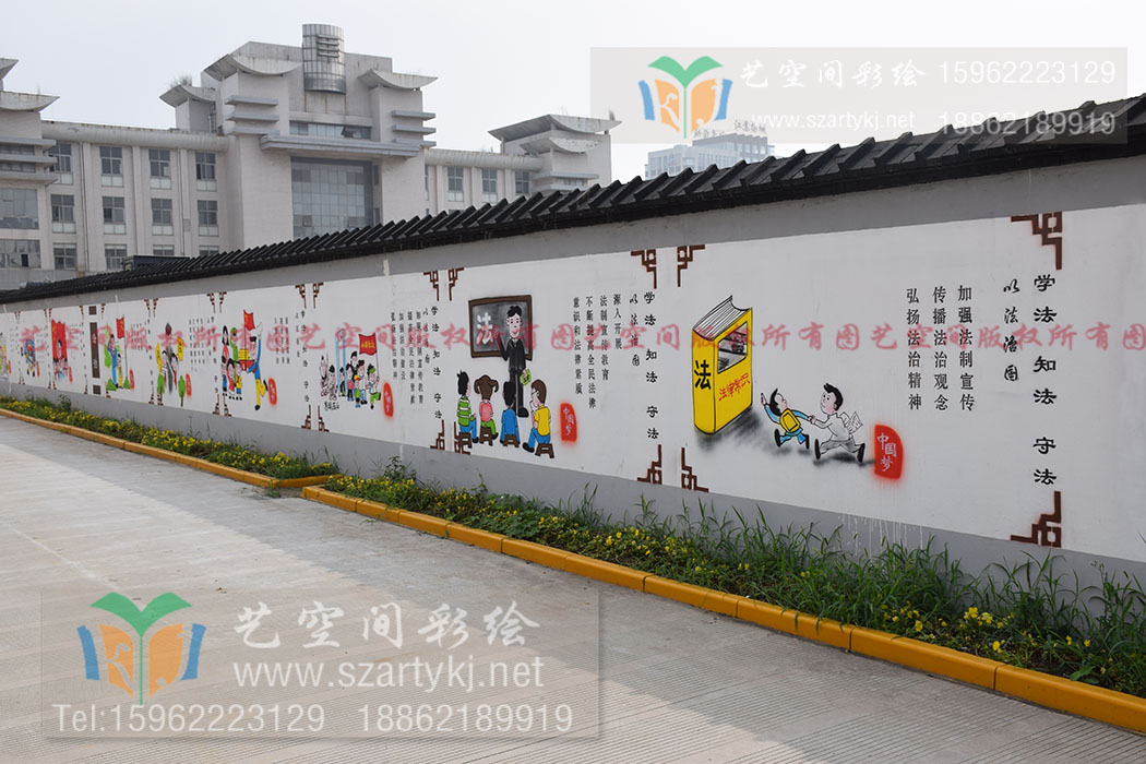 墙体彩绘是创意与实用的完美融合。在创作上墙体彩绘打破传统束缚,可根据围墙的尺寸、地形特点定制创意方案,卡通、3D、写实等多种风格自由切换,既能打造法制宣传围墙,也能营造古朴典雅的文化街区;在实用性上,彩绘涂料具备防水、防晒、耐擦洗的特性,能够长久保持色彩鲜亮,延长围墙的使用寿命。相较于传统的瓷砖粘贴、涂料粉刷,墙体彩绘更具灵活性与艺术性,成本可控、施工高效,是低成本、高效果的环境美化选择,广泛应用于乡村建设、校园改造、城市街区更新等多个领域。墙体彩绘正用创意与匠心重塑围墙之美。它让每一面围墙都成为展示形象的窗口、传递文化的载体、凝聚人心的纽带。随着产业的深入推进,墙体彩绘必将绽放更绚丽的光彩,绘就出更多充满活力、独具特色的美丽画卷,让围墙焕新彩,让生活添精彩,为城乡发展注入源源不断的美学动力与文化活力。